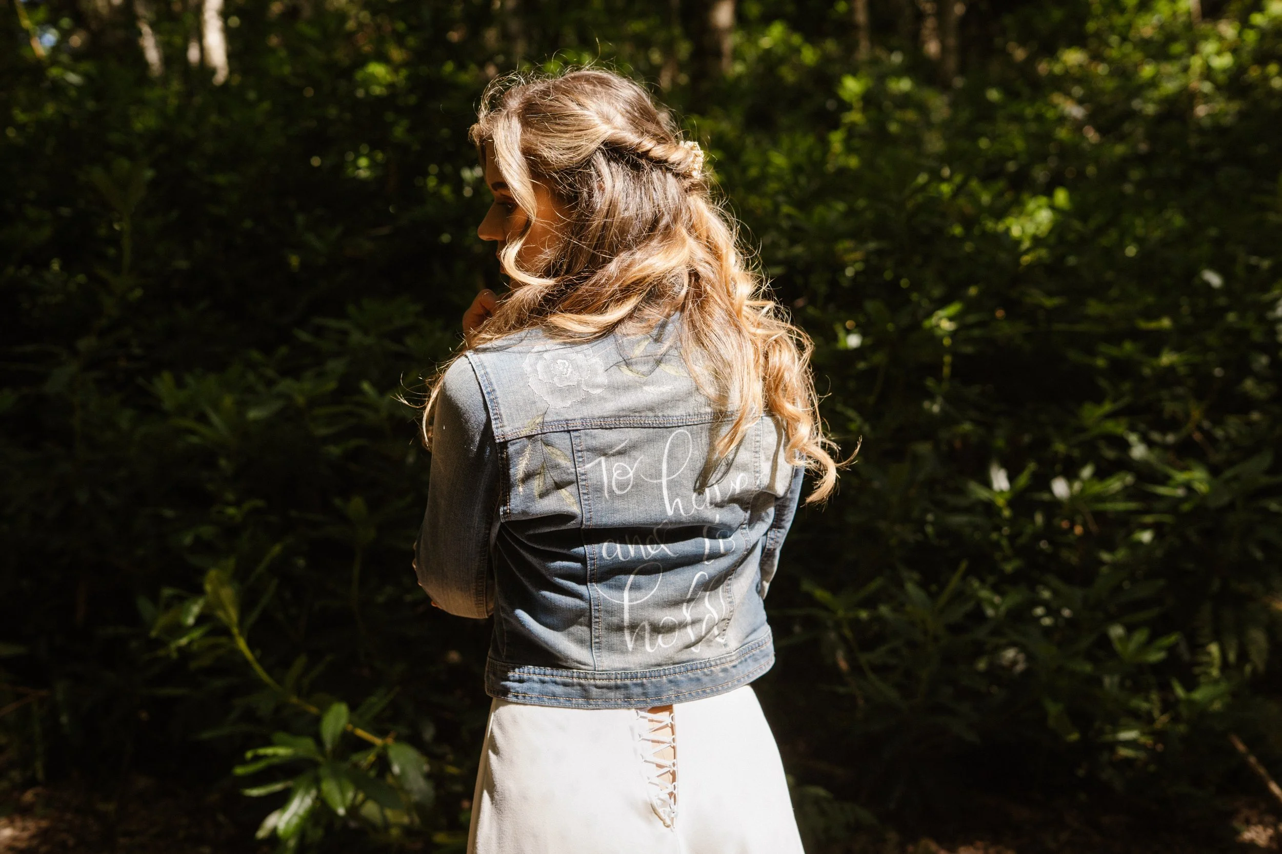 Featuring Just Married written in white - it’s a beautiful keepsake you can treasure forever and wear long after your wedding day as well as a way to keep warm in the evening!